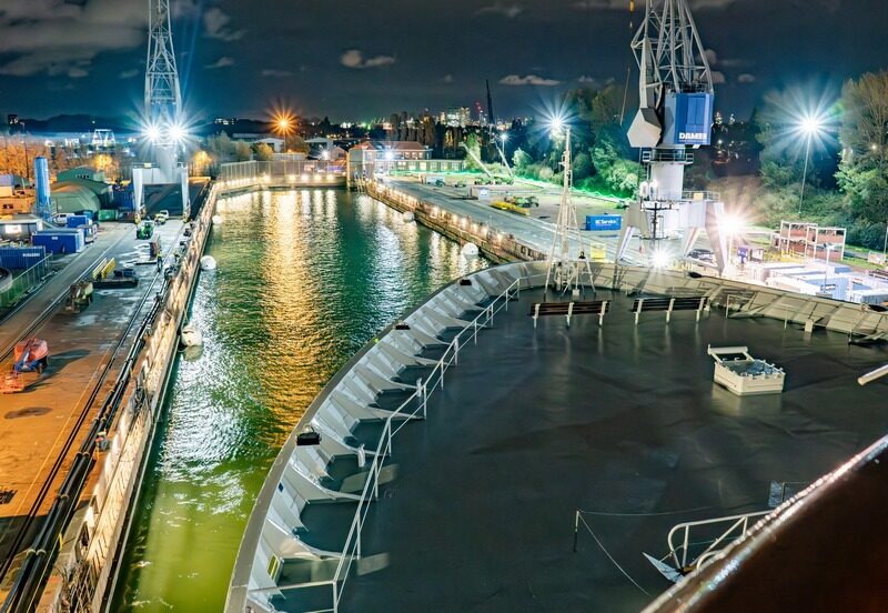 “每隔几年,船舶就会进入干船坞进行维护工作,确保一切保持良好运行,并使我们能够维修船舶通常位于水线以下的部分,”弗雷德。奥尔森说。