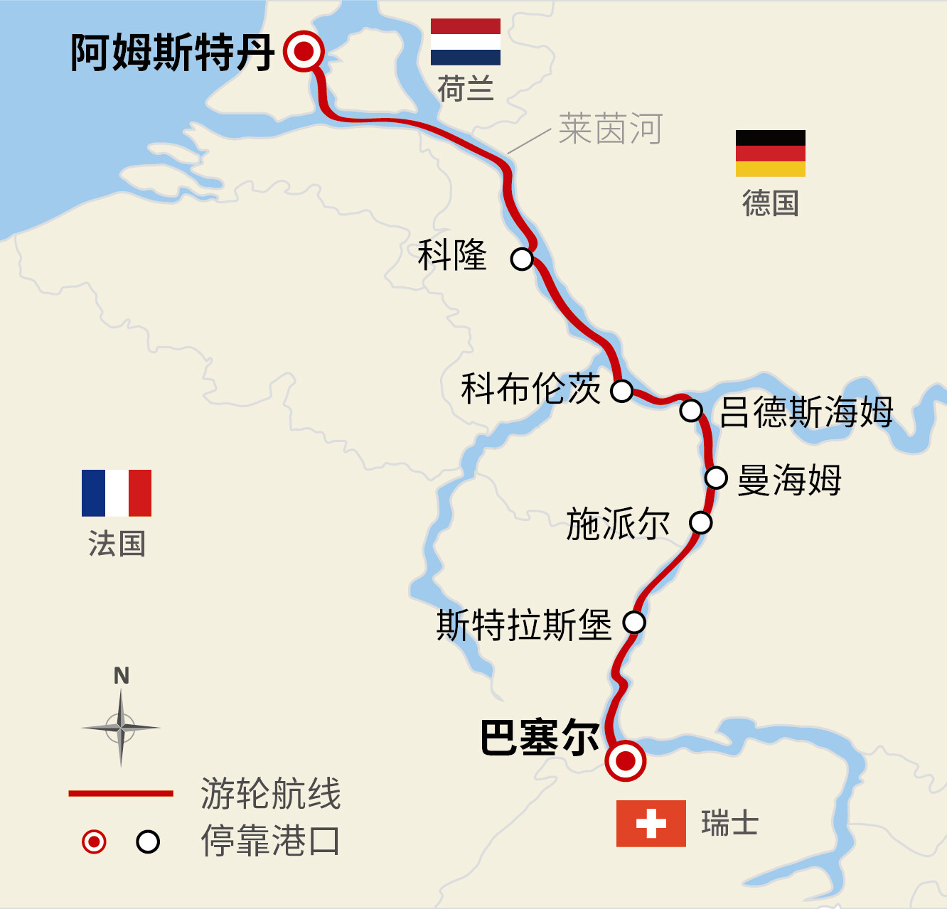莱茵河经典河轮行程将途径欧洲四个最重要的国家,游览多座世界名城。河轮将穿越众多风光旖旎的景区,包括联合国教科文组织保护的海德堡老城,充满了文化、历史和魅力元素。我们将从瑞士巴塞尔上船一直抵达荷兰阿姆斯特丹,极目远望神秘的莱茵河谷全景,一望无垠的葡萄田、莱茵河最美航段-罗蕾莱之崖、世界上密度最高的城堡群。
