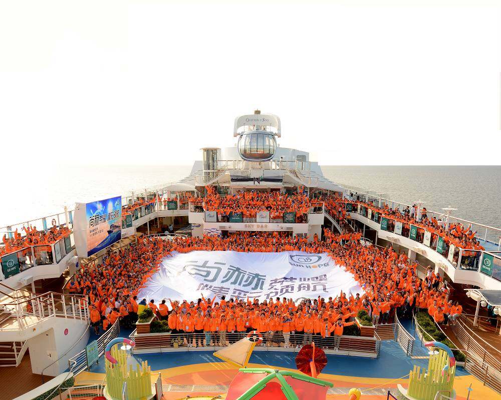 •航程中,借由“海洋赞礼号”多元化的场地,特别的快闪活动在众多场地中惊喜上演,也让热情的企业文化感染在场的每一位。