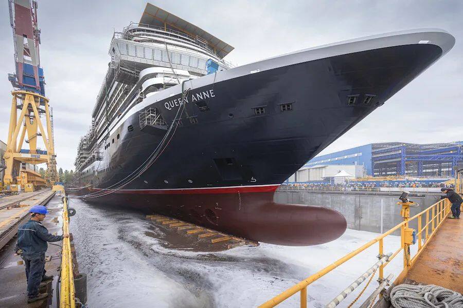 随着下水仪式的完成,现在的重点将转向船的内部装修。安妮女王号的设计以传承、精湛、风格、讲故事和创新为基础,14层甲板可容纳3000名客人。这艘船将为游客提供令人惊叹的体验,包括有史以来在海上策划的最大的艺术收藏。