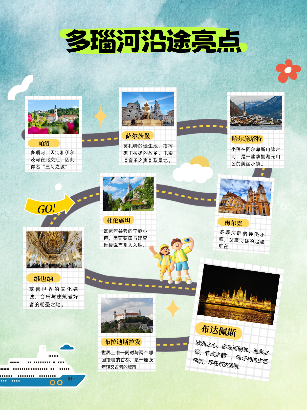 🔻下水:从“三河之城”帕绍出发,逐渐进入曾经的奥匈帝国,有种“从宁静走向繁华”的递进感,美泉宫、布达佩斯国会大厦作为压轴,越往后越精彩