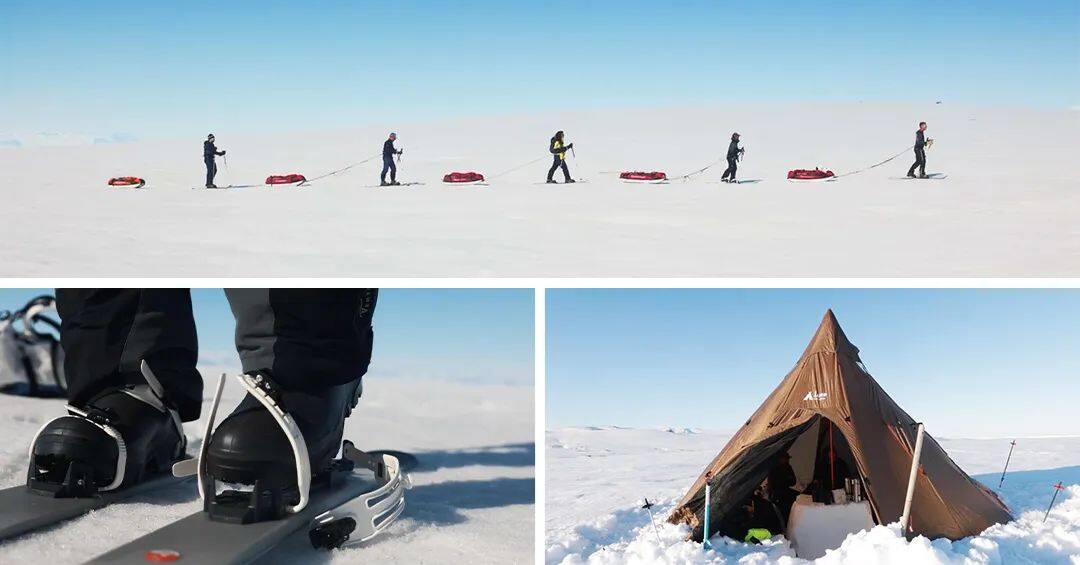 考察的队伍由庞洛员工组成,背景多元,都有着良好的身体素质,善于徒步旅行,包含我们熟悉的极地探险专家、SEDNA 的运营总监 Nicolas Dubreuil,并由经验丰富的向导带领前行 —— 他们是因纽特人社区和高山的专家。其中 Ole Eliassen 是一位来自 Kullorsuaq 的格陵兰人,他既是冰盖方面的专家,也是一名医生,曾陪同庞洛探险队参与指挥官夏古号预演习(dry run)的地理北极点首航。