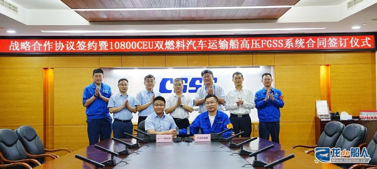 值得注意的是,会上七一一所环保装备事业部副总经理苏毅、外高桥造船采购总监许如强分别代表双方签署了6艘10800CEU双燃料汽车运输船高压LNG供气系统合同。