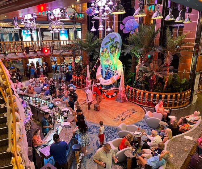 这里的氛围悠闲而有趣;工作人员知识渊博、专业,并且记住您的名字。船上色彩缤纷,有一些带长阳台的大套房,价格非常实惠。简而言之,成立一年的 Margaritaville at Sea Islander 已经取得了成功,但仍将其初创重点放在以入门级价格提供优质的客户服务上。 (上图:Sea Islander 玛格丽塔维尔的中庭。) Margaritaville at Sea Islander 拥有 12 个甲板,可容纳 2,114 名客人,总注册吨位为 85,619 吨,长 959 英尺。前歌诗达大西洋号(Costa Atlantica 最初建于 2000 年,与嘉年华精神号属于同一普通级)于 2023 年被 Margaritaville at Sea 收购,进行了彻底翻新,并于 2024 年 6 月重新推出。 公共区域:我们的目标始终是吸引客人享受玛格丽塔维尔的乐趣——从您进入色彩缤纷、友好的中庭、热带装饰和巨大的标志性人字拖的那一刻起,一切就开始了。鱼和鸟在天花板上荡来荡去,搅拌机在酒吧里旋转,乐队演奏着低调而迷人的音乐。吉米·巴菲特的粉丝可以在 Front Porch Swing 上自拍,或者前往众多酒吧之一,包括三层楼的 LandShark Bar 和泳池甲板上的 5 o'Clock Somewhere Bar、位于成人专用区的船尾 Tiki Bar 或 Havana Daydreamin' Sports Bar and Lounge。晚上,还有更温馨的 Hemisphere Dancer Craft Spirits 酒吧(以吉米的飞机命名)、Far Side Lounge 和 Coral Reef Lounge 以及 Bubbles Up Lounge 和 Champagne Bar。 岛民套房 住宿:客舱种类齐全,从 160 平方英尺的内舱到带 280 平方英尺阳台的 365 英尺豪华套房。但 Islander 的独特之处在于其顶级套房的价格实惠。我们的行程是七晚,坦帕往返科苏梅尔、奥乔里奥斯和乔治敦,入住大露台套房,双人间价格为每人 1,250 美元。它配备了许多甜蜜的套房福利 - 我们的包括专用主餐厅的升级菜单、带全套额外衣柜的全套更衣室、浴室内的双水槽、优先登机和下机,以及使用带 Nespresso 咖啡机、冷苏打水和水的私人休息室。大屏幕电视提供标准的游轮节目(新闻、体育、儿童、三个电影频道),但如果您知道如何操作,您可以将其连接到手机,而且床边设有插座和 USB 端口,这是最受欢迎的一处。床很舒服;如果床垫太硬,请向客房服务员要一张床垫。 餐饮:一些网上评论家对 Islander 的食物嗤之以鼻,事实上,自助餐很小,而且选择偏向于乡村风格。但这似乎吸引了大多数人群,其中大部分是南方人,拥有大量军队(岛民不时提供免费旅行给现任和过去的军队和急救人员,而且经常有很大的折扣)。作为一个习惯了不同风格的纽约人,我觉得 Ultimate Chill Dining 套餐值 159 美元的价格,包括美味的 JBW Steakhouse(如果你喜欢洋葱汤和肋眼牛排);寿司、海鲜和Tiki Bar三道特色餐;和特别的早午餐。 岛民牛排馆 您也可以随用随付。网上牛排馆的价格为每人 55 美元,Far Side Sushi、Island Eats 和 Tiki Grill 的牡蛎、龙虾和鸡翅单点价格为每人 10 至 20 美元。自助餐每餐供应三道主菜,通常是一份鸡肉、一份猪肉、一份鱼,再加上意大利面和沙拉,每顿饭和饭间的长时间间隔都会提供冰淇淋和披萨。还有一家咖啡厅,供应特色饮品和冷热三明治,其中包括可以称为晚餐的 Rueben。不过,只有牛排馆和两个餐厅提供完整的室内坐下体验。 Paradise 的免费 Mexican Cutie Cantina 和 Cheeseburger 以及点菜 Far Side Sushi、Island Eats 和 Tiki Grill 均是户外小吃摊。 泳池和水疗中心:三个泳池(其中一个仅限成人使用)阳光充足,但阴凉处很少,不过小屋可供出租。酒店设有一个小型水疗中心,内设两间理疗室和一个小型健身房。 娱乐:两场娱乐性的专业制作表演,由才华横溢的歌手和舞者不时在中庭表演快闪表演,为娱乐节目开场和闭幕。其他夜晚则倾向于喜剧和杂技,但每晚都有表演,船上的酒吧和中庭都有音乐家表演。这里有一个儿童俱乐部,提供全套的每日游戏、健身和舞蹈课程,当然还有宾果游戏,一位幸运的获胜者可以免费乘坐游轮。 港口和海岸游览:墨西哥科苏梅尔的游览;牙买加奥乔里奥斯;乔治敦、大开曼岛包括当地海滩的常见加勒比美食以及与各种海洋生物一起游泳。在牙买加,我们选择了邓恩河瀑布/竹滩俱乐部短途旅行,当膝盖疼痛导致我前往邓恩河观景台而不是尝试攀登瀑布时,我们获得了一次美好的经历。谁知道您可以独自冒险进入那里的瀑布,并在树林里独自在凉爽的水中度过一个小时? 可以改进:虽然这艘船看起来很漂亮,但一些小细节——比如套房阳台栏杆上的风化木材——引人注目。但我狡辩。你不可能以这个价格拥有一切。 卖点:如果您的客户正在寻找物超所值的大套房体验,并提供真正优质的服务,并且您对 15% 的基本旅行顾问佣金、五间客舱起的团体定价、1:12 的导游费率以及由 20 年名人老手 Ron Gulaskey 从头开始雇用的新的热心销售团队感兴趣,那么您可能想穿上人字拖,来观看虾开始沸腾 海岛民的玛格丽塔维尔。 如需了解更多信息,请联系销售与贸易关系高级副总裁 Ron Gulaskey,电话:203-913 7616,或发送电子邮件至 rgulaskey@margaritavilleatsea.com。有关邮轮公司的更多信息,请访问 www.margaritavilleatseas.com。