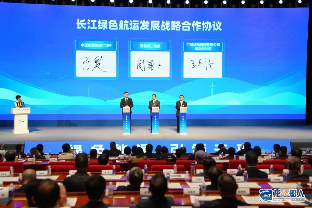 会议发布了华电湖北阳逻车船两用(V2G)充换电示范站试运行和长江干线航线启运路演,湖北港口集团、中国华电集团有限公司湖北分公司、中国船舶集团712所共同签订了《长江航运绿色动力发展项目战略合作协议》。