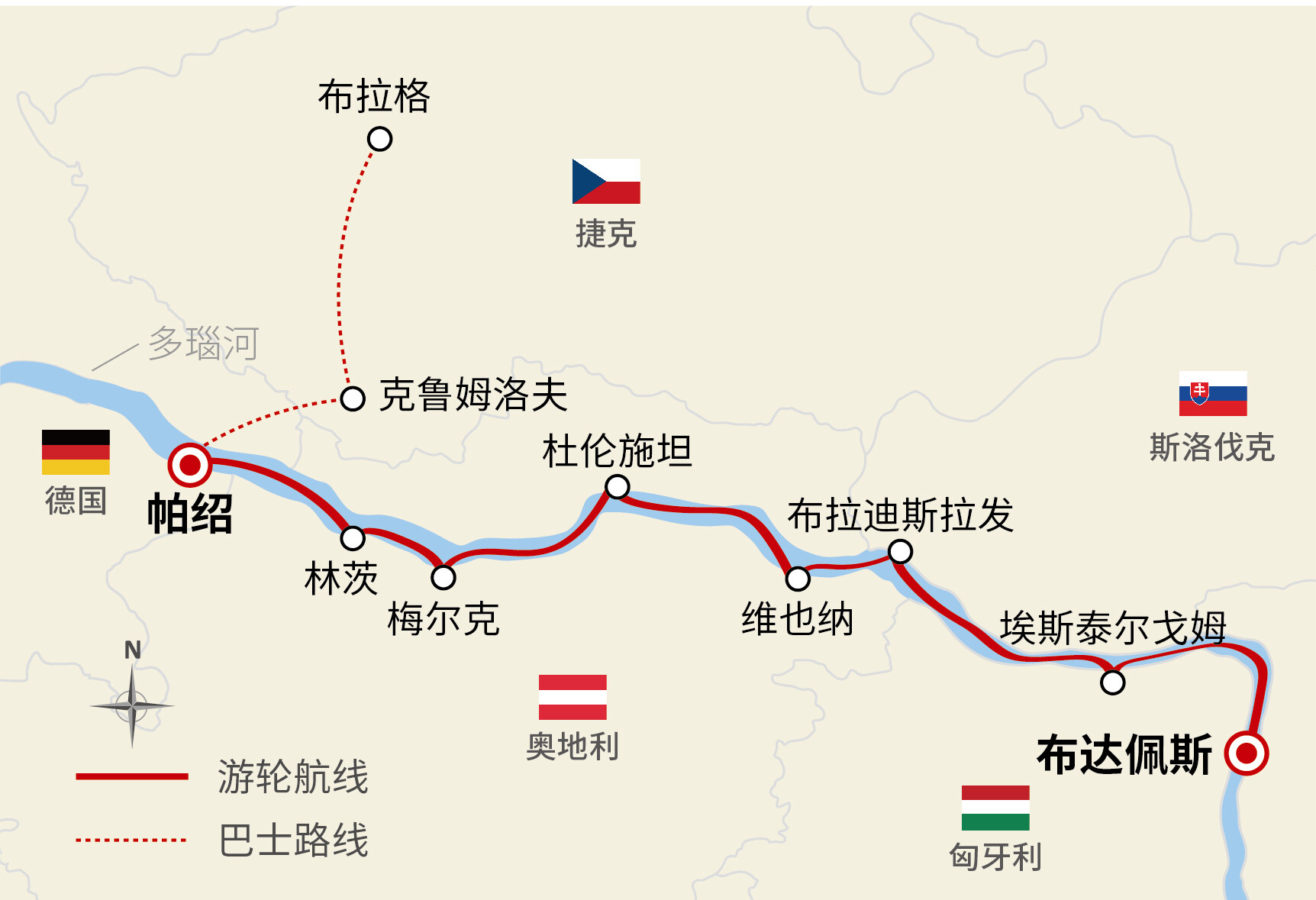 此次多瑙河经典河轮线路将沿美丽的多瑙河延伸,从因河、伊尔茨河和多瑙河交汇的“三河之城”帕绍一直抵达匈牙利首都布达佩斯。河轮将途径欧洲四个最重要的国家,游览多座世界名城。河轮将穿越众多风光旖旎的景区,包括联合国教科文组织保护的瓦豪峡谷,充满了文化、历史和魅力元素。